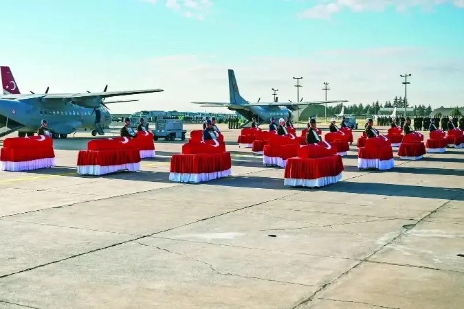 ANKARA (İGFA) - Azerbaycan-Gürcistan sınırında düşen C-130 askerî kargo uçağımızdaki 20 kahraman silah arkadaşımız için Mürted Hava Meydan Komutanlığı’nda uğurlama töreni düzenlendi.