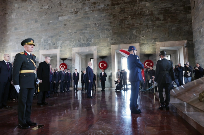 ANKARA (İGFA) - Cumhurbaşkanı Erdoğan'ın Aslanlı Yol'un başındaki yerini almasının ardından başlayan törende, Türkiye Büyük Millet Meclisi Başkanı Numan Kurtulmuş, Cumhurbaşkanı Yardımcısı Cevdet Yılmaz, CHP Genel Başkanı Özgür Özel, İYİ Parti Genel Başkanı Müsavat Dervişoğlu, Cumhurbaşkanlığı Kabinesi üyeleri, yüksek yargı organlarının başkanları, Genelkurmay Başkanı Orgeneral Selçuk Bayraktaroğlu, kuvvet komutanları, siyasi partilerin temsilcileri ve diğer devlet erkânı da Aslanlı Yol'dan geçerek mozoleye çıktı.