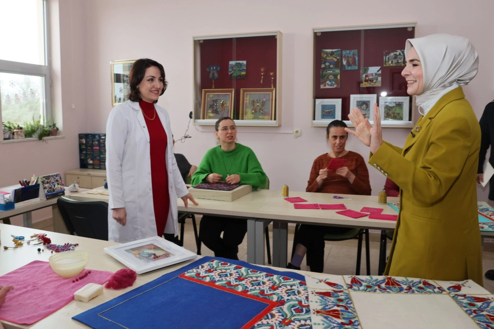 ANKARA (İGFA) - Aile ve Sosyal Hizmetler Bakanı Mahinur Özdemir Göktaş, Saray Engelsiz Yaşam Bakım ve Rehabilitasyon Merkezi'ne ziyarette bulundu. Burada engelli bireylerle bir araya gelen Göktaş, merkezdeki atölyelerde yapılan çalışmalara ilişkin yetkililerden bilgi aldı, ürünleri inceledi.