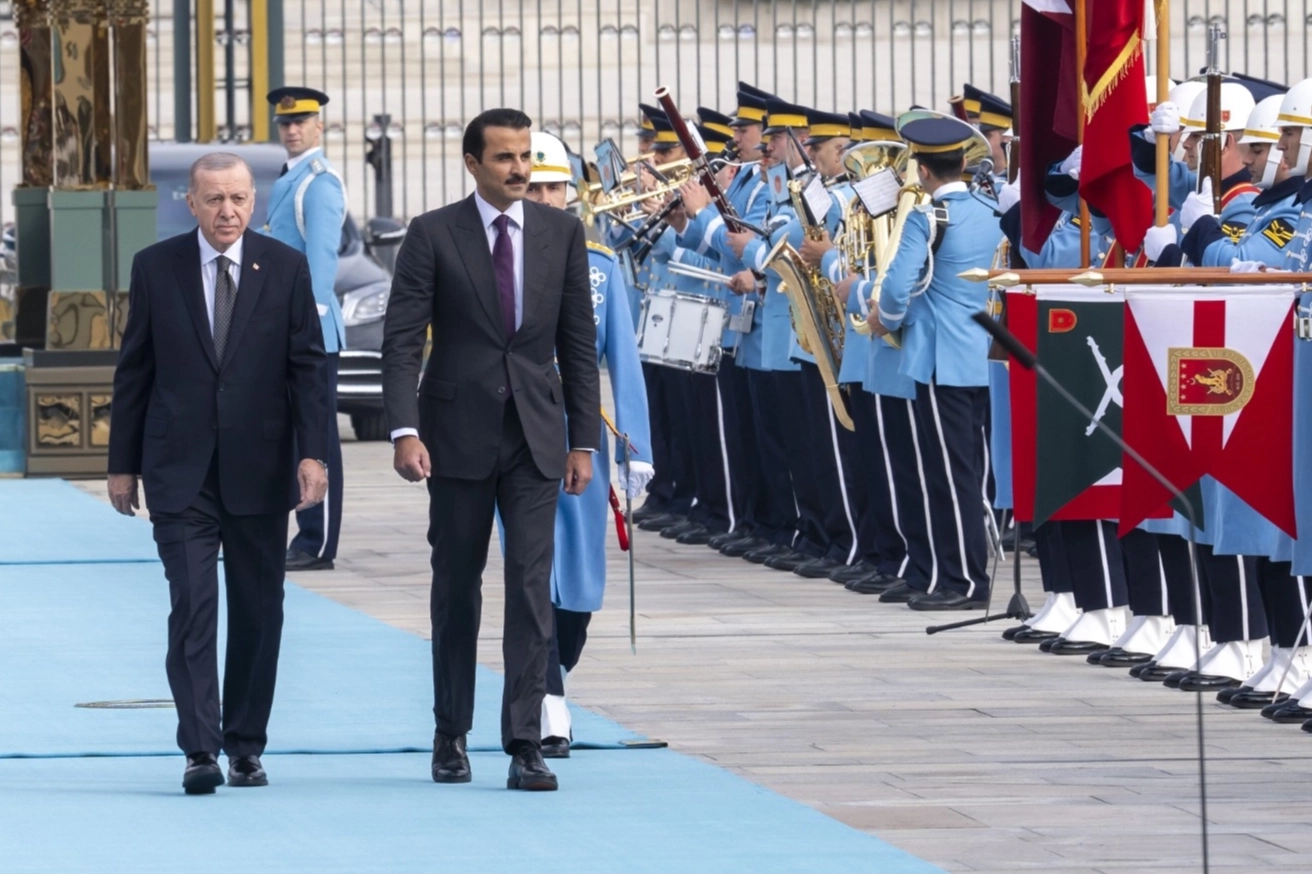 İletişim Başkanlığı'ndan aktarılan habere göre Cumhurbaşkanı Erdoğan, Al Sani'yi külliyenin ana giriş kapısında karşıladı. Cumhurbaşkanı Erdoğan ve Al Sani'nin tören alanındaki yerlerini almasının ardından 21 pare top atışı eşliğinde millî marşlar çalındı. Al Sani, Muhafız Alayı Tören Kıtası'nı "Merhaba asker" diyerek selamladı. Törende, tarihte kurulan 16 Türk devletini temsil eden bayraklar ve askerler de yer aldı.