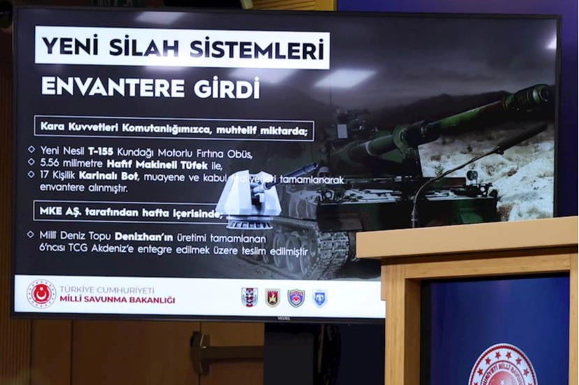ANKARA (İGFA) - Milli Savunma Bakanlığı’nın haftalık basın bilgilendirme toplantısında konuşan Bakanlık Sözcüsü Tuğamiral Zeki Aktürk, yerli ve mili savunma sanayi ürünlerinin Türk Silahlı Kuvvetleri’nin gücüne güç kattığını belirtti. Aktürk, bu kapsamda Türk Silahlı Kuvvetleri envanterine muhtelif miktarda Yeni Nesil T-155 Kundağı Motorlu Fırtına Obüsü, 5.56 milimetre hafif makineli tüfek ve 17 kişilik karinalı botun alındığını, sistemlerin muayene ve kabul süreçlerinin tamamlandığını açıkladı.