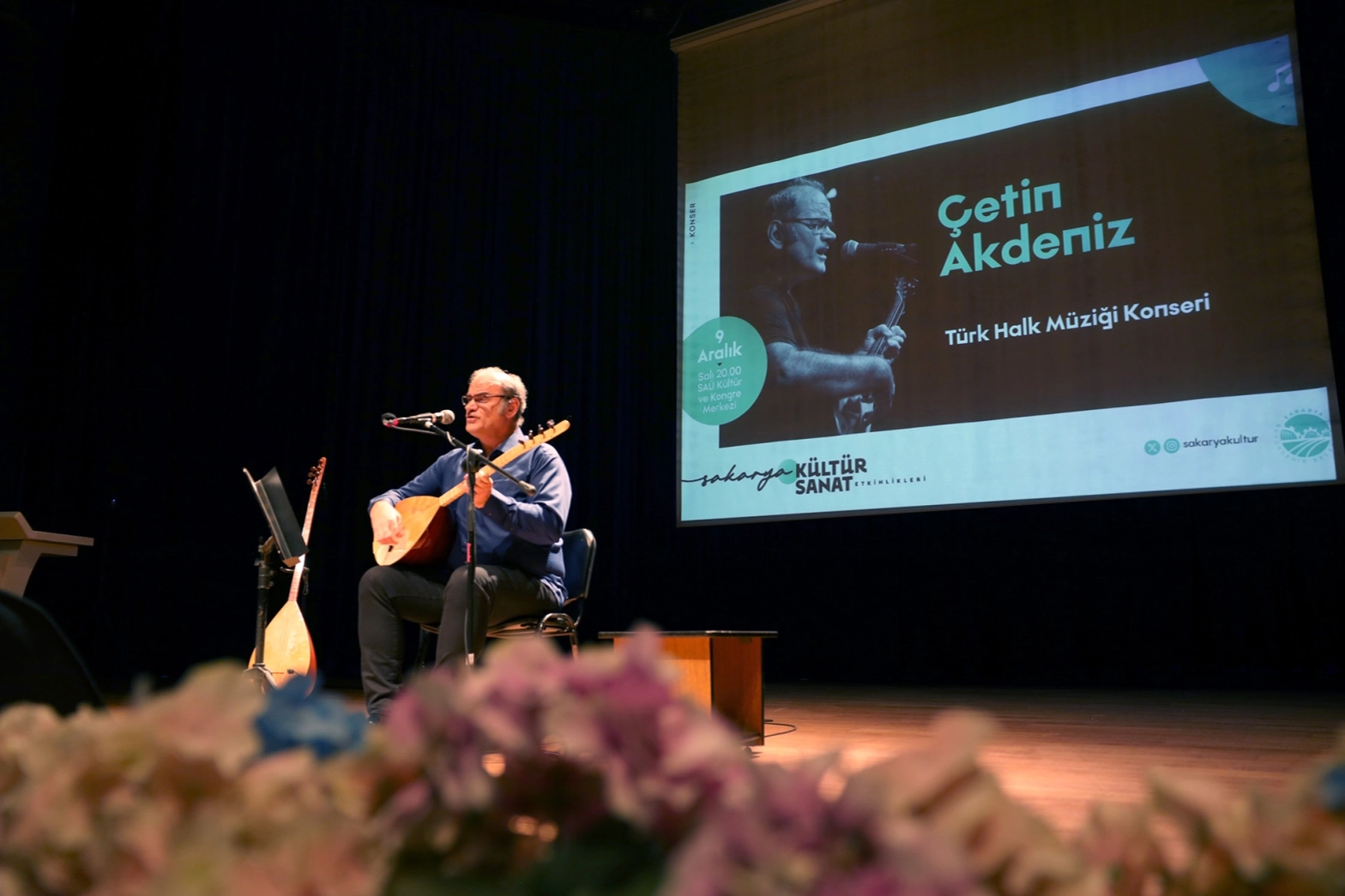 SAKARYA (İGFA) - Sakarya Büyükşehir Aralık kültür sanat etkinlikleri kapsamında sahne alan ünlü sanatçı Çetin Akdeniz, sazı ve özgün yorumuyla Sakaryalılara müzik dolu bir gece yaşattı.
